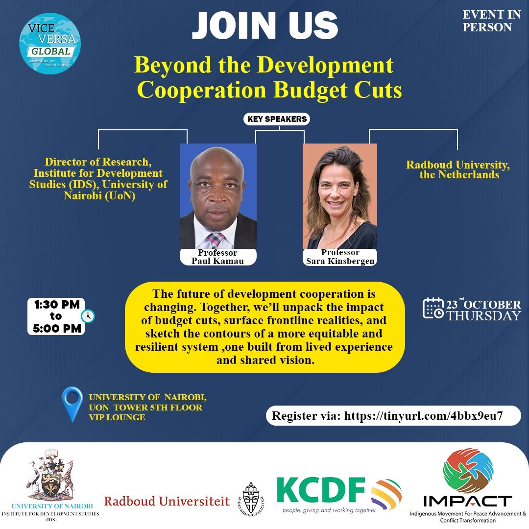 University of Nairobi University of Nairobi, Nairobi, NairobiThe future of development cooperation is changing. Together, we'll unpack the impact of budget cuts, surface frontline realities, and sketch the contours of a more equitable and resilient system ,one built from lived experience and shared vision.