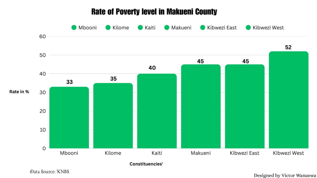 Approximately 44.7% of the population in Makueni County lives below the national poverty line, according to 2022 data from the Kenya National Bureau of Statistics. Poverty continues to intersect with teenage pregnancy, increasing vulnerability to exploitation and limiting access to education and health services.