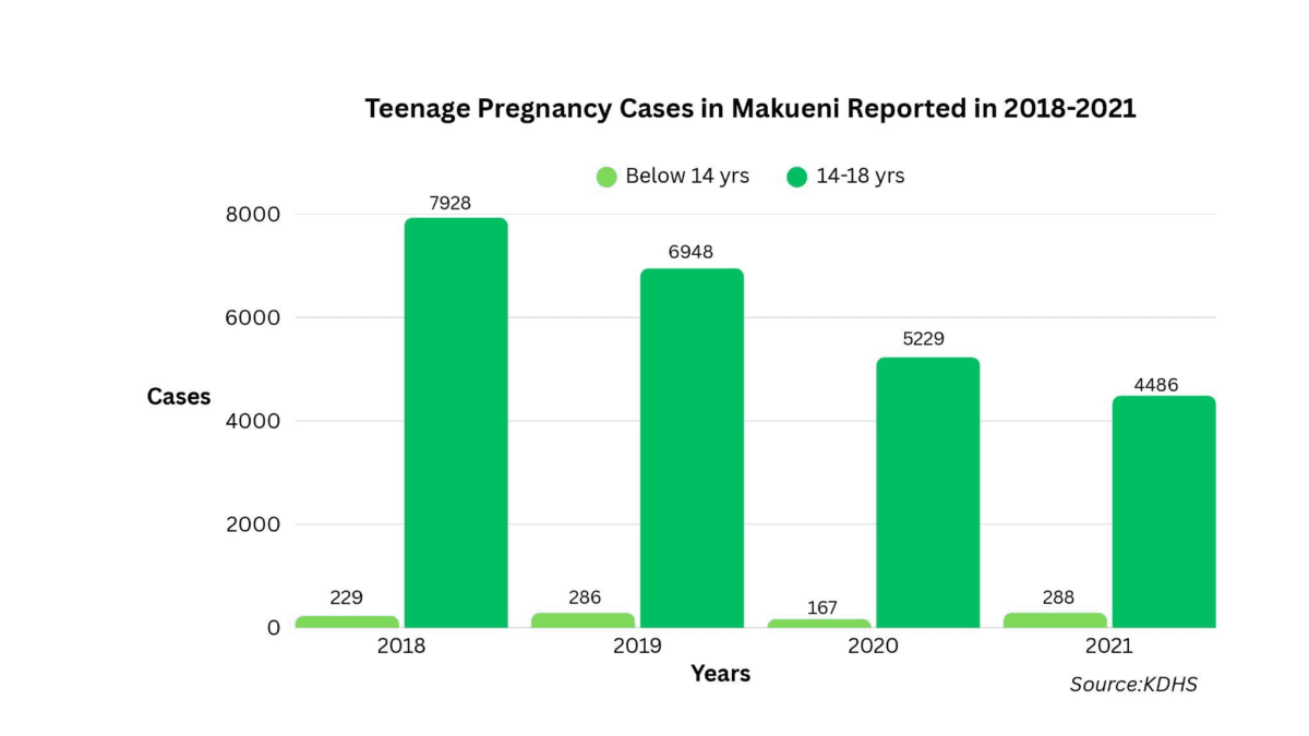 Between 2018 and 2021, a total of 25,511 teenage pregnancies were reported in the county, with the majority occurring among girls aged 14–18—highlighting a critical break point in education pathways.