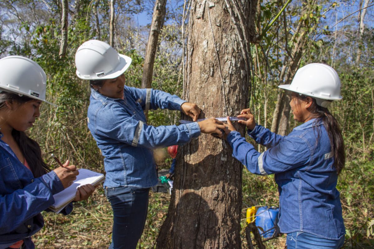 However, making a living from the forest has long been a challenge for Bolivia’s Indigenous communities. They often lack the capital and equipment needed for large-scale logging operations—like those that drag massive trees between two tractors. At the same time, national forest laws historically prohibited smaller-scale harvesting, effectively sidelining Indigenous people from making use of the forests they stewarded.